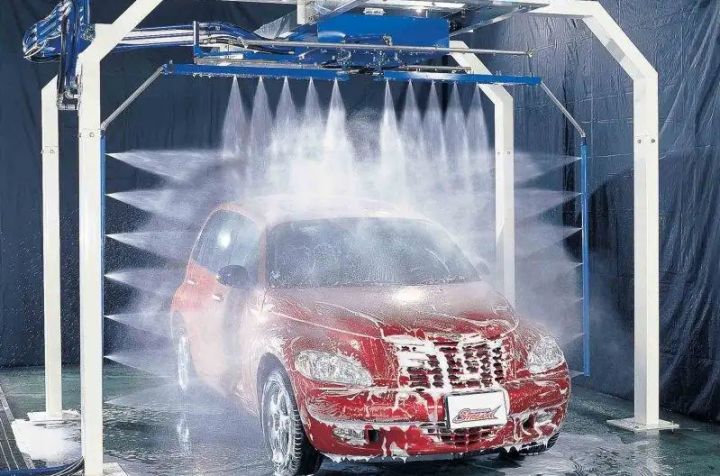 2、喷洒洗车液高压水枪冲洗干净车身之后接下来该给车上液了,将洗车液均匀的泼洒在车身之上,然后用多功能的高压洗车机或者是手工的将洗车液擦拭均匀,不要使用洗衣粉、肥皂等。